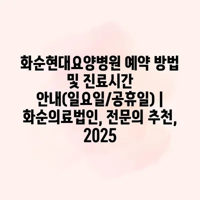 화순현대요양병원 예약 방법 및 진료시간 공지(일요일/공휴일) | 화순의료법인, 전연락 추천, 2025 화순현대요양병원은 편리한 예약 시스템을 통해 환자분들의 방문을 돕고 있습니다. 예약은 본원 홈페이지나 전화로 가능하며,… 더 보기 »화순현대요양병원 예약 방법 및 진료시간 안내(일요일/공휴일) | 화순의료법인, 전문의 추천, 2025