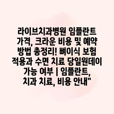 라이브치과병원에서는 임플란트 가격에 대한 정보와 크라운 비용을 자세히 공지합니다. 임플란트를 생각하고 계신 분들에게 정확한 비용과 치료 방법을 제공하기 위해 이 글을 작성했습니다. 임플란트 시술에 대한… 더 보기 »라이브치과병원 임플란트 가격, 크라운 비용 및 예약 방법 총정리! 뼈이식 보험 적용과 수면 치료 당일원데이 가능 여부 | 임플란트, 치과 치료, 비용 안내”