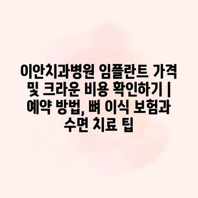 이안치과병원 임플란트 가격 및 크라운 비용 확인하기 | 예약 방법, 뼈 이식 보험과 수면 치료 팁