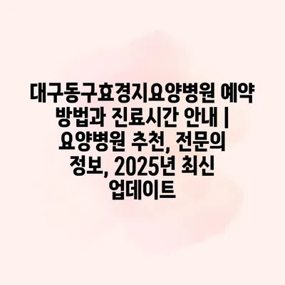 대구동구효경지요양병원 예약 방법과 진료시간 안내 | 요양병원 추천, 전문의 정보, 2025년 최신 업데이트