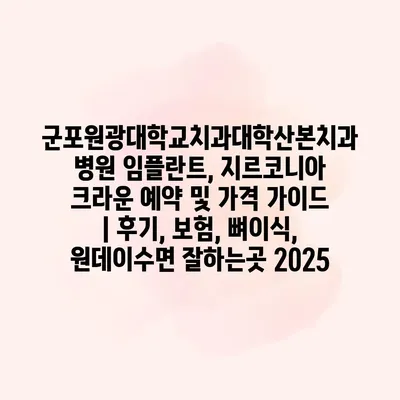 군포원광대학교치과대학산본치과병원 임플란트, 지르코니아 크라운 예약 및 가격 가이드 | 후기, 보험, 뼈이식, 원데이수면 잘하는곳 2025