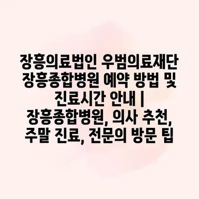 장흥의료법인 우범의료재단 장흥종합병원 예약 방법 및 진료시간 안내 | 장흥종합병원, 의사 추천, 주말 진료, 전문의 방문 팁