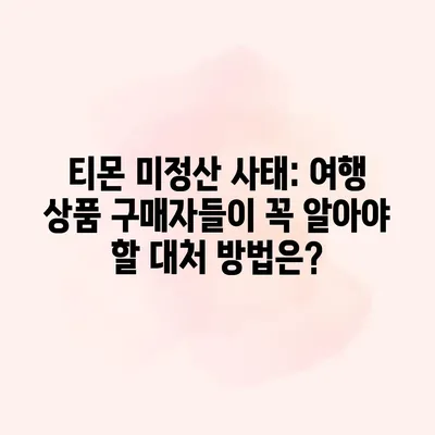 티몬 미정산 사태 여행 상품 구매자들은 어떻게 해야 하나요 티몬의 미정산 사태로 인해 많은 소비자들이 혼란에 빠졌습니다. 특히 여행 상품을 구매한 소비자들은 이 상황에서 어떻게… 더 보기 »티몬 미정산 사태: 여행 상품 구매자들이 꼭 알아야 할 대처 방법은?