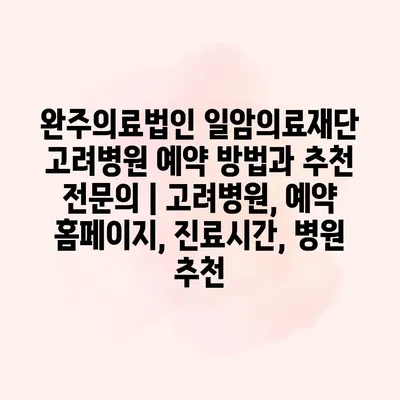완주의료법인 일암의료재단 고려병원은 다양한 전문 진료를 알려드려 지역 주민들에게 신뢰받고 있는 의료 기관입니다. 예약 방법은 간단합니다. 병원 공식 홈페이지에서 온라인 예약 시스템을 통해 원하는 날짜와… 더 보기 »완주의료법인 일암의료재단 고려병원 예약 방법과 추천 전문의 | 고려병원, 예약 홈페이지, 진료시간, 병원 추천
