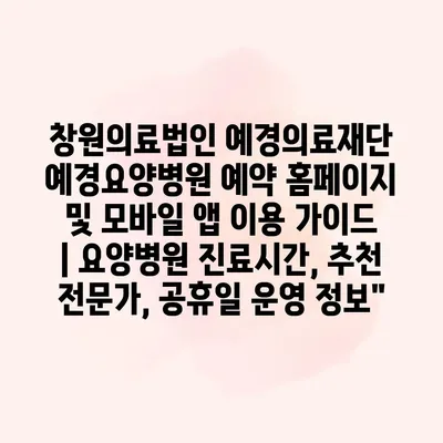 창원의료법인 예경의료재단 예경요양병원 예약 홈페이지 및 모바일 앱 이용 설명서에 오신 것을 환영합니다. 저희 병원은 간편한 예약 시스템을 통해 환자분们의 편의를 최우선으로 생각하고 있습니다. 홈페이지와… 더 보기 »창원의료법인 예경의료재단 예경요양병원 예약 홈페이지 및 모바일 앱 이용 가이드 | 요양병원 진료시간, 추천 전문가, 공휴일 운영 정보”
