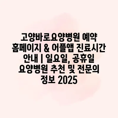 고양바로요양병원 예약 홈페이지 & 어플앱 진료시간 공지 | 일요일, 공휴일 요양병원 추천 및 전연락 정보 2025에 대해 알아보겠습니다. 고양바로요양병원은 환자들의 편리한 진료를 위해 온라인 예약… 더 보기 »고양바로요양병원 예약 홈페이지 & 어플앱 진료시간 안내 | 일요일, 공휴일 요양병원 추천 및 전문의 정보 2025