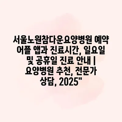 서울노원참다운요양병원 예약 어플 앱과 진료시간, 일요일 및 공휴일 진료 공지 | 요양병원 추천, 전문가 상담, 2025에 대해 설명제공합니다. 서울노원참다운요양병원은 환자들이 보다 편리하게 진료 예약을 할… 더 보기 »서울노원참다운요양병원 예약 어플 앱과 진료시간, 일요일 및 공휴일 진료 안내 | 요양병원 추천, 전문가 상담, 2025″