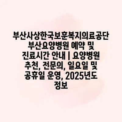 부산사상한국보훈복지의료공단 부산요양병원은 편안한 치료와 회복을 위해 최선을 다하고 있습니다. 예약 및 진료시간에 대한 자세한 공지를 통해 환자분들의 불편함을 최소화하고자 합니다. 병원 진료는 평일 오전 9시부터… 더 보기 »부산사상한국보훈복지의료공단 부산요양병원 예약 및 진료시간 안내 | 요양병원 추천, 전문의, 일요일 및 공휴일 운영, 2025년도 정보