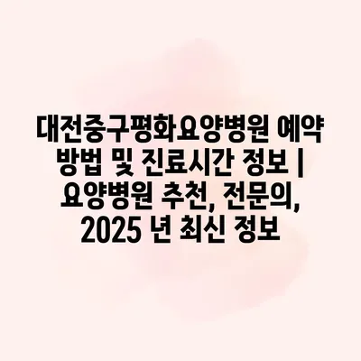 대전중구평화요양병원은 고품질의 의료 서비스를 알려드려 환자들의 건강과 안녕을 위해 힘쓰고 있습니다. 예약 방법은 간단합니다. 전화 또는 병원 웹사이트를 통해 온라인 예약이 가능하며, 미리 방문 일정을… 더 보기 »대전중구평화요양병원 예약 방법 및 진료시간 정보 | 요양병원 추천, 전문의, 2025 년 최신 정보
