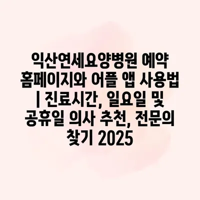 익산연세요양병원 예약 홈페이지와 어플 앱 사용법 | 진료시간, 일요일 및 공휴일 의사 추천, 전문의 찾기 2025