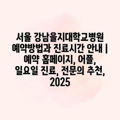 서울 강남을지대학교병원 예약방법과 진료시간 공지입니다. 예약은 병원의 공식 홈페이지나 전용 애플리케이션을 통해 할 수 있습니다. 홈페이지에 접속한 후 ‘진료 예약’ 메뉴를 선택하면 손쉽게 예약을 진행할… 더 보기 »서울 강남을지대학교병원 예약방법과 진료시간 안내 | 예약 홈페이지, 어플, 일요일 진료, 전문의 추천, 2025
