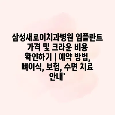 삼성새로이치과병원 임플란트 가격 및 크라운 비용 확인하기 | 예약 방법, 뼈이식, 보험, 수면 치료 안내’