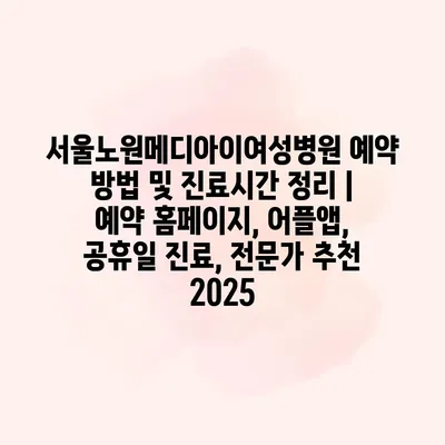 서울노원메디아이여성병원 예약 방법 및 진료시간 정리 | 예약 홈페이지, 어플앱, 공휴일 진료, 전문가 추천 2025