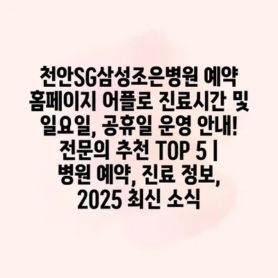 천안SG삼성조은병원 예약 홈페이지 어플로 진료시간 및 일요일, 공휴일 운영 안내! 전문의 추천 TOP 5 | 병원 예약, 진료 정보, 2025 최신 소식