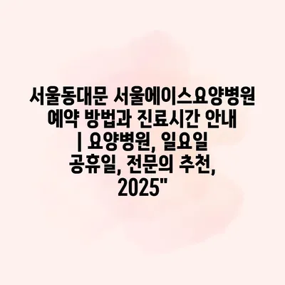 서울동대문 서울에이스요양병원 예약 방법과 진료시간 안내 | 요양병원, 일요일 공휴일, 전문의 추천, 2025″