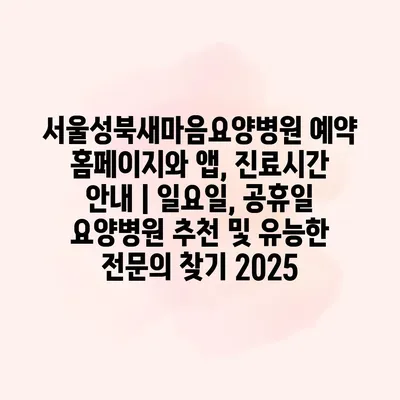 서울성북새마음요양병원 예약 홈페이지와 앱, 진료시간 안내 | 일요일, 공휴일 요양병원 추천 및 유능한 전문의 찾기 2025