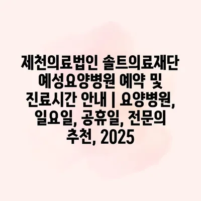 제천의료법인 솔트의료재단 예성요양병원 예약 및 진료시간 안내 | 요양병원, 일요일, 공휴일, 전문의 추천, 2025