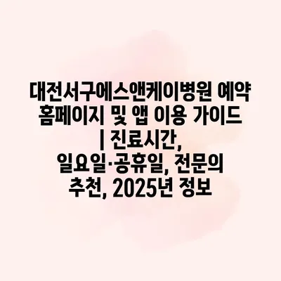 대전서구에스앤케이병원 예약 홈페이지 및 앱 이용 가이드 | 진료시간, 일요일·공휴일, 전문의 추천, 2025년 정보