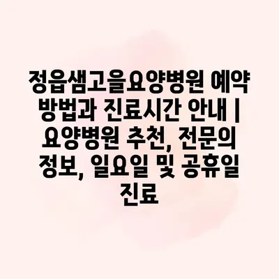 정읍샘고을요양병원 예약 방법과 진료시간 안내 | 요양병원 추천, 전문의 정보, 일요일 및 공휴일 진료