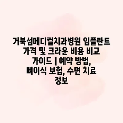 거북섬메디컬치과병원 임플란트 가격 및 크라운 비용 비교 가이드 | 예약 방법, 뼈이식 보험, 수면 치료 정보