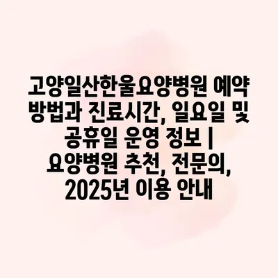 고양일산한울요양병원 예약 방법과 진료시간, 일요일 및 공휴일 운영 정보 | 요양병원 추천, 전문의, 2025년 이용 안내