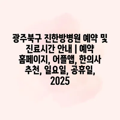 광주북구 진한방병원 예약 및 진료시간 안내 | 예약 홈페이지, 어플앱, 한의사 추천, 일요일, 공휴일, 2025
