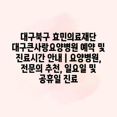대구북구 효민의료재단 대구큰사랑요양병원 예약 및 진료시간 안내 | 요양병원, 전문의 추천, 일요일 및 공휴일 진료