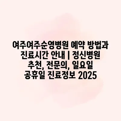 여주여주순영병원 예약 방법과 진료시간 공지 | 정신병원 추천, 전연락, 일요일 공휴일 진료정보 2025에 대해 알려제공합니다. 여주여주순영병원은 정신 건강의 중요성을 깊이 이해하고, 전문적인 치료를 제공하는 곳입니다.… 더 보기 »여주여주순영병원 예약 방법과 진료시간 안내 | 정신병원 추천, 전문의, 일요일 공휴일 진료정보 2025