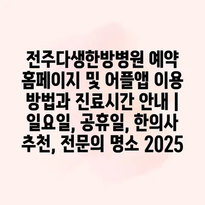 전주다생한방병원은 예약 홈페이지와 어플리케이션을 통해 간편하게 진료를 예약할 수 있습니다. 홈페이지에 접속하거나 어플을 다운로드한 후, 사용자 계정을 생성하고 필요한 내용을 입력하면 손쉽게 스케줄을 잡을 수… 더 보기 »전주다생한방병원 예약 홈페이지 및 어플앱 이용 방법과 진료시간 안내 | 일요일, 공휴일, 한의사 추천, 전문의 명소 2025