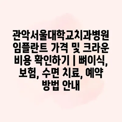 관악서울대학교치과병원 임플란트 가격 및 크라운 비용 확인하기 | 뼈이식, 보험, 수면 치료, 예약 방법 안내