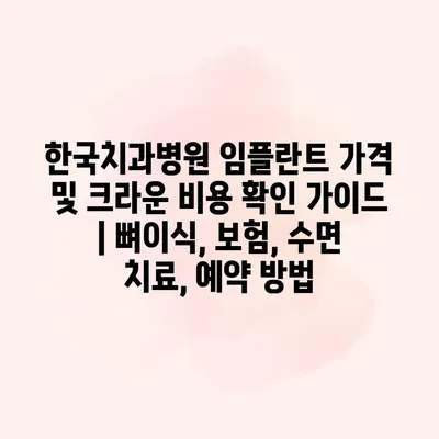 한국치과병원 임플란트 가격 및 크라운 비용 확인 가이드 | 뼈이식, 보험, 수면 치료, 예약 방법
