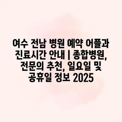 여수 전남 병원 예약 어플과 진료시간 안내 | 종합병원, 전문의 추천, 일요일 및 공휴일 정보 2025
