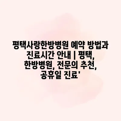 평택사랑한방병원 예약 방법과 진료시간 안내 | 평택, 한방병원, 전문의 추천, 공휴일 진료’