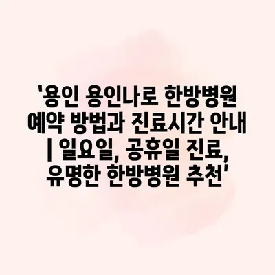 ‘용인 용인나로 한방병원 예약 방법과 진료시간 안내 | 일요일, 공휴일 진료, 유명한 한방병원 추천’