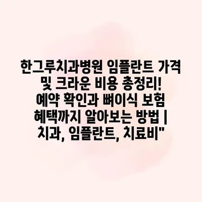 한그루치과병원 임플란트 가격 및 크라운 비용 총정리! 예약 확인과 뼈이식 보험 혜택까지 알아보는 방법 | 치과, 임플란트, 치료비”