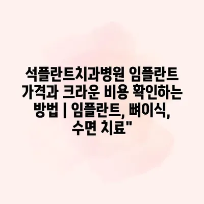 석플란트치과병원 임플란트 가격과 크라운 비용 확인하는 방법에 대해 알아보겠습니다. 임플란트 치료를 고려할 때 가장 중요한 요소 중 하나는 비용입니다. 석플란트치과병원에서는 다양한 임플란트와 크라운 치료를 제공하며,… 더 보기 »석플란트치과병원 임플란트 가격과 크라운 비용 확인하는 방법 | 임플란트, 뼈이식, 수면 치료”