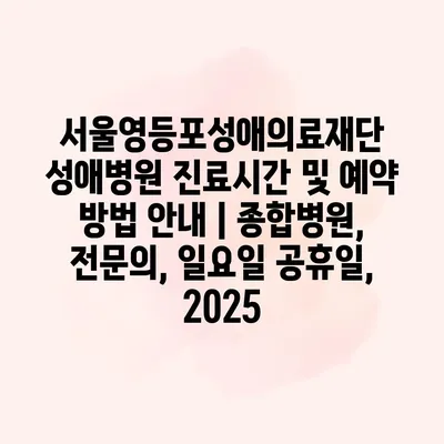 서울영등포성애의료재단 성애병원 진료시간 및 예약 방법 공지 | 종합병원, 전연락, 일요일 공휴일, 2025 성애병원은 서울 영등포구에 위치한 종합병원으로, 다양한 전연락들이 상주하여 질 높은 진료를 알려알려드리겠습니다.… 더 보기 »서울영등포성애의료재단 성애병원 진료시간 및 예약 방법 안내 | 종합병원, 전문의, 일요일 공휴일, 2025