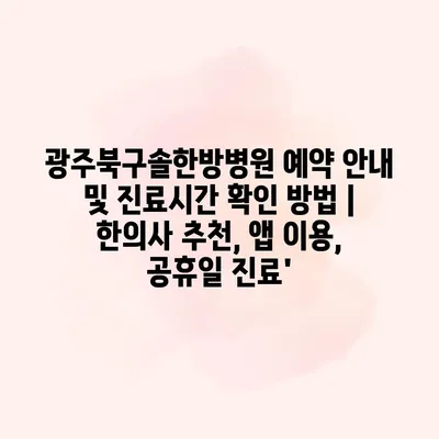 광주북구솔한방병원 예약 공지 및 진료시간 확인 방법에 대해 소개합니다. 이 병원은 한의학을 기반으로 다양한 건강 관리 서비스를 알려알려드리겠습니다. 예약은 전화나 홈페이지를 통해 간편하게 할 수… 더 보기 »광주북구솔한방병원 예약 안내 및 진료시간 확인 방법 | 한의사 추천, 앱 이용, 공휴일 진료’