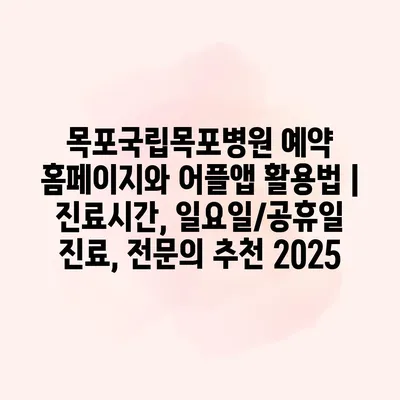 목포국립목포병원 예약 홈페이지와 어플앱 활용법 | 진료시간, 일요일/공휴일 진료, 전문의 추천 2025