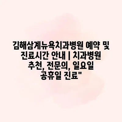 김해삼계뉴욕치과병원은 예약 및 진료시간에 대한 정확한 공지를 알려드려 환자들이 보다 편리하게 방문할 수 있도록 돕고 있습니다. 환자 여러분은 전화 또는 온라인을 통해 간편하게 예약을 진행하실… 더 보기 »김해삼계뉴욕치과병원 예약 및 진료시간 안내 | 치과병원 추천, 전문의, 일요일 공휴일 진료”
