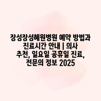 장성장성혜원병원 예약 방법과 진료시간 공지 | 의사 추천, 일요일 공휴일 진료, 전연락 정보 2025에 대해 알아보겠습니다. 장성장성혜원병원은 편리한 예약 시스템을 알려드려, 온라인 및 전화로 간편하게… 더 보기 »장성장성혜원병원 예약 방법과 진료시간 안내 | 의사 추천, 일요일 공휴일 진료, 전문의 정보 2025