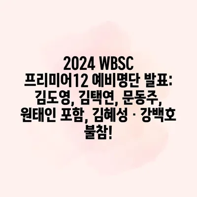 2024 WBSC 프리미어12 대표팀 예비명단 김도영 김택연 문동주 원태인 포함 김혜성 강백호 불참 이번 블로그 포스트에서는 2024 세계야구소프트볼협의회(WBSC) 프리미어12 예비명단과 관련하여, 포함된 젊은 선수들과 불참… 더 보기 »2024 WBSC 프리미어12 예비명단 발표: 김도영, 김택연, 문동주, 원태인 포함, 김혜성ㆍ강백호 불참!