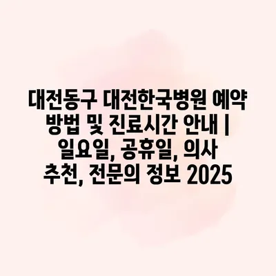 대전동구 대전한국병원 예약 방법 및 진료시간 공지 | 일요일, 공휴일, 의사 추천, 전연락 정보 2025 대전한국병원은 지역 주민들에게 신뢰받는 의료 기관으로, 다양한 진료 과목과 전연락가… 더 보기 »대전동구 대전한국병원 예약 방법 및 진료시간 안내 | 일요일, 공휴일, 의사 추천, 전문의 정보 2025