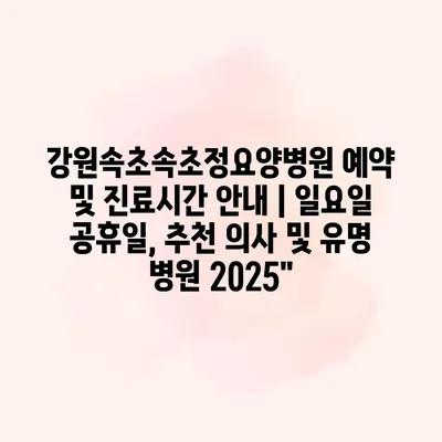 강원속초속초정요양병원 예약 및 진료시간 안내 | 일요일 공휴일, 추천 의사 및 유명 병원 2025″