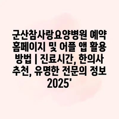 군산참사랑요양병원 예약 홈페이지 및 어플 앱 활용법 | 진료시간, 일요일 및 공휴일 안내, 추천 전문의 정보”