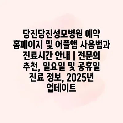 당진당진성모병원 예약 홈페이지 및 어플앱 사용법과 진료시간 안내 | 전문의 추천, 일요일 및 공휴일 진료 정보, 2025년 업데이트